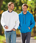 preshrunk 75% ring-spun cotton/25% polyester • 8.5-oz. • matching jersey-lined hood • 2" rolled forward shoulders • contrast dark grey twill neck tape • 1x1 fashion rib with spandex • pouch pocket • double-needle cuffs • quarter-turned to eliminate center crease • heat transfer label • Sizes: S-3XL