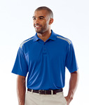 100% polyester mesh piqué • 4.4 oz. • moisture-wicking • UV protection • pill-resistant • fully taped flat rib-knit collar • half-moon patch • 3-button placket with dyed-to-match buttons • double-needle flat-lock stitching at shoulders • armholes • sleeves and bottom hem • contrast shoulder panels • 2" side vents • tagless • Sizes: S-4XL